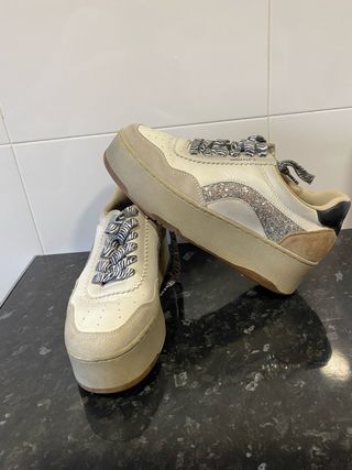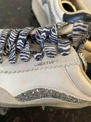 Zapatillas Bimba y Lola en buen estado. - Diseño con detalles en glitter plateado. - Cordones con estampado de cebra. - Suela de plataforma gruesa.