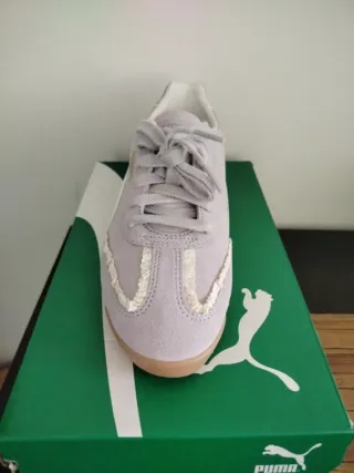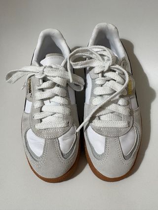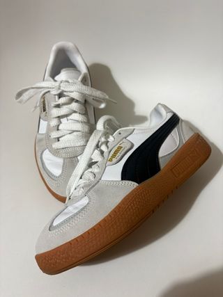 Zapatillas deportivas Puma Palermo con un diseño clásico y moderno. - Combinación de ante y cuero. - Suela de goma marrón. - Detalles de diseño en negro. no tengo la caja puestas muy poco, muy buen estado