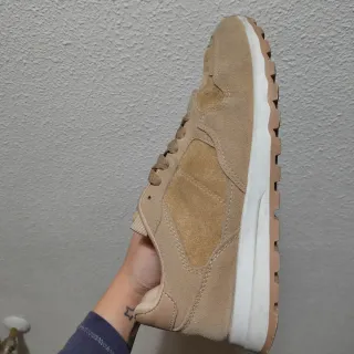 Zapatillas deportivas de ante en color beige. Perfectas para el día a día. - Cierre con cordones. - Detalle de ante en la puntera y talón. - Suela de goma. _defecto de mancha que se tapa con pantalón y plantillas desgastada, de ahí su bajo precio