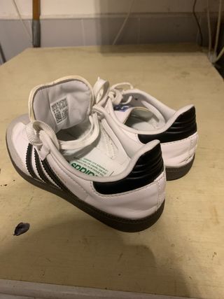 Zapatillas Adidas Samba OG en talla 36 2/3. Un clásico para el día a día. - Diseño icónico con las tres franjas. - Combinación de blanco y negro. - Suela de goma marrón.