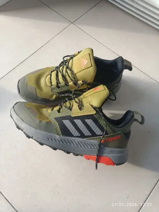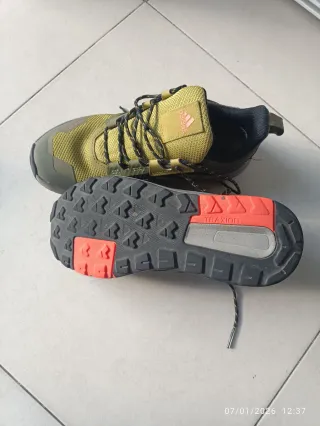 Zapatillas de montaña Adidas terrex para niño. - Color verde y naranja. - Cierre con cordones.