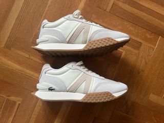 Zapatillas de mujer Lacoste en color blanco y crema, talla 39. Completamente a estrenar. Adjunto capturas de pantalla del email de confirmación de compra en la tienda oficial Lacoste. Precio original: 91€ en rebajas.