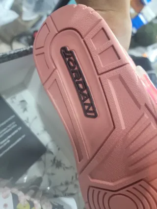 Zapatillas Air Jordan 3 Retro con un diseño llamativo. - Combinación de colores blanco y rosa. - Detalles florales en el interior y cordones. - Suela con amortiguación visible.