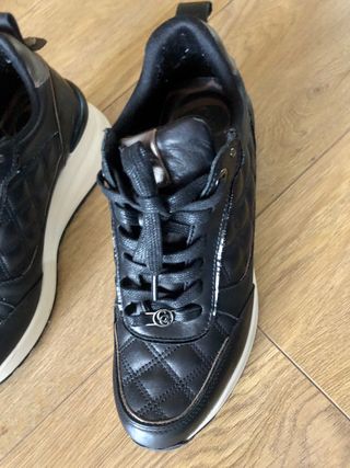 Zapatilla de mujer con un diseño acolchado y moderno. - Cierre con cordones. - Detalle metálico en la parte delantera. - Suela de plataforma.