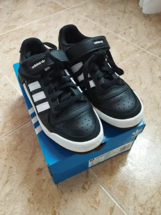 Zapatillas deportivas Adidas Forum Low 2. - Diseño clásico en negro y blanco. - Cierre de velcro y cordones. - Logo de Adidas en el lateral y la lengüeta.