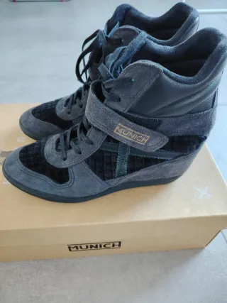 Zapatillas Munich de caña alta en talla 39. Combinan ante y tejido.