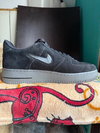 Zapatillas Nike Air Force 1 de ante. - Color negro con detalles grises. - Diseño clásico de caña baja.