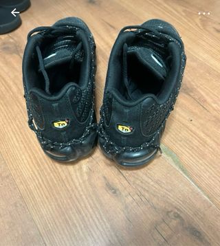 Zapatillas Nike TN Air Max Plus en color negro y detalles plateados. Diseño moderno y llamativo. - Parte superior de malla transpirable. - Cordones reflectantes. - Suela con amortiguación. - Logo de Nike visible. son myy parecias a las reales