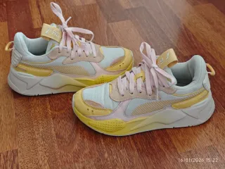 Zapatillas Puma RS-X en talla 37. Usadas un mes, han quedado pequeñas. Tallan justas más bien 36.5. Tal y como se ven en las fotos. Van sin la caja