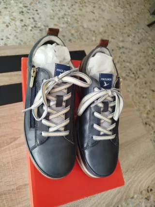 Zapatillas de la marca Pikolinos en talla 39. Solo se han usado dos veces. En perfectas condiciones - Combinación de colores azul y marrón. - Cierre con cremallera lateral y cordones. - Detalle de piel en la parte trasera. - Suela de goma con diseño dentado.