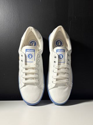 Soy Luis, el creador de una nueva marca emergente. Y presento estas zapatillas nuevas de REBELD. Estas unidades pertenecen a una producción anterior que no llegó a comercializarse al completo, por lo que se están vendiendo ahora en liquidación de stock. Son zapatillas totalmente nuevas, con su caja original, fabricadas con los mismos estándares de calidad que cualquier drop regular de la marca. ✔️ Tallas: 40, 41, 42, 43, 44 ✔️ Color: Azul ✔️ Estado: Nuevas Modelo cómodo y versátil, pensado para uso diario. 📦 Envío rápido en 24–48 h. ❌ No cambios. 💬 Precio ajustado por liquidación. Cualquier duda, puedes escribirme !!