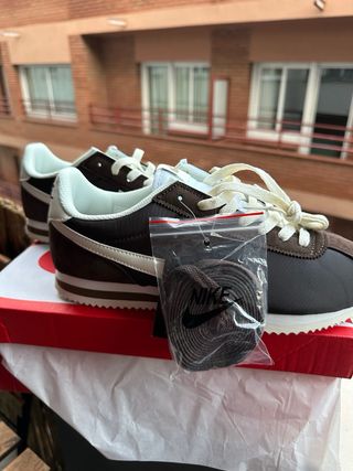 Zapatillas Nike Cortez con un diseño clásico y atemporal. - Combinación de colores marrón y blanco. - Detalle de Swoosh plateado en los cordones. - Extra trenzas color marrón - Unisex
