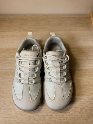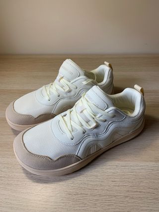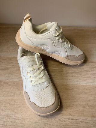 Zapatillas barefoot en color beige y blanco. - Diseño moderno y cómodo. - Suela flexible para una pisada natural. - Nuevas, sin estrenar.