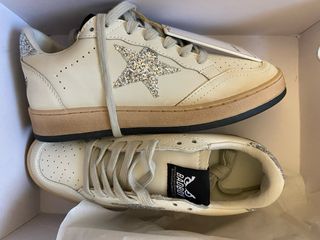 Zapatillas de la marca BAD BOY con detalles brillantes. - Diseño con estrella plateada. - Acabado en blanco y plateado. -Sin estrenar