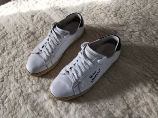 Zapatillas de la marca Saint Laurent. -Exterior piel de becerro 100%. -Forro piel de becerro 100%. -Suela goma 100%. - Color blanco. - Talla 42.