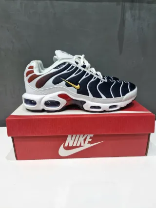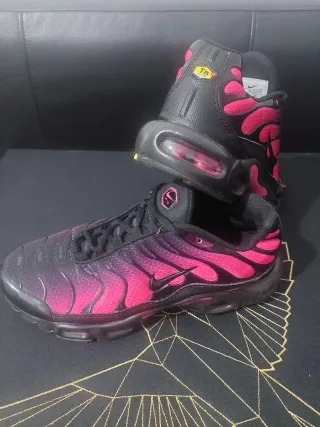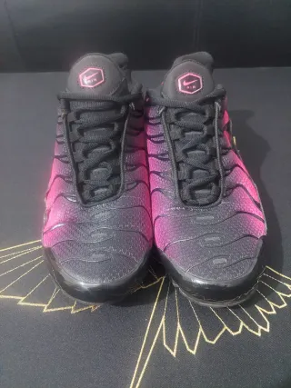 Zapatillas deportivas Nike Air Max Plus TN con un degradado llamativo. *DETALLE MINIMO EN EL.COSTADO DERECHO PEGAMENTO SINTETICO - Diseño con detalles en rosa y negro. - Unidad Air visible en la suela. - Logo TN en el talón.