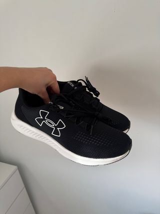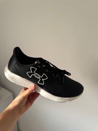 Zapatillas deportivas Under Armour en color negro con detalles blancos. Perfectas para el día a día o para entrenar. - Diseño moderno y ligero. - Logo de la marca en los laterales. - Suela de goma para mayor agarre.
