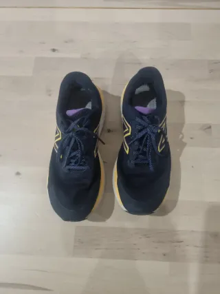 Zapatillas deportivas de la marca New Balance para mujer. - Diseño en color azul con detalles en amarillo. - Cierre con cordones.