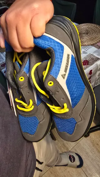 Zapatillas de seguridad Bellota Flex Nitro en color azul y gris. Diseñadas para ofrecer protección y comodidad. - Modelo Flex Nitro. - Combinación de colores azul y gris.