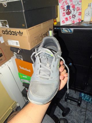 Zapatillas deportivas Skechers en color gris. Diseñadas para ofrecer comodidad y ligereza. - Parte superior de malla transpirable. - Suela flexible. - Detalle de logo en el lateral. - Cierre con cordones.