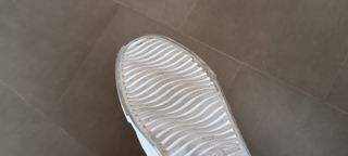 Zapatillas deportivas de color beige, talla 37, con un diseño moderno y una suela gruesa y robusta. Están en muy buen estado. Beige sneakers, size 37, with a modern design and a thick, sturdy sole. They are in very good condition.