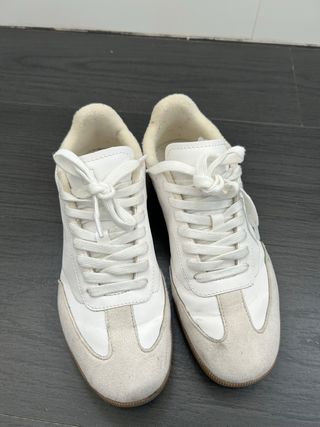 Zapatillas estilo retro–runner súper chulas en beige y azul marino. Diseño moderno con detalles en malla y refuerzos en contraste. Comodísimas para caminar, duraderas y con una suela que agarra genial. Están nuevas, nunca usadas. Quedan bien con vaqueros, chándal o looks más casual.