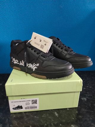 Zapatillas Out Of Office For Walking Off-White Talla: 42 Hecho en Italia Características: Negro Cierre con cordones en la parte delantera Puntera redonda Suela de goma Composición: Suela: Goma 100% Exterior: Cuero 89%, Poliéster reciclado 11% Forro: Poliéster reciclado 82%, poliéster 18% Incluye bolsa de viaje protectora de polvo.