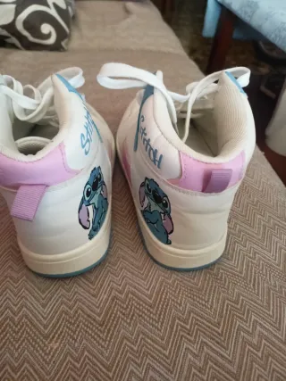 Zapatillas de estilo deportivo para niña con el personaje de Stitch. - Diseño con detalles en azul y rosa. - Estampado de Stitch en los laterales. - Nombre Stitch bordado en la parte superior.