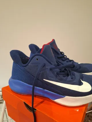 Zapatillas de baloncesto Nike Precision en color azul con detalles en rojo. - Diseño deportivo. - Cierre con cordones. - Suela blanca.