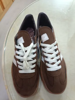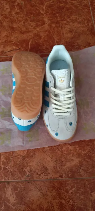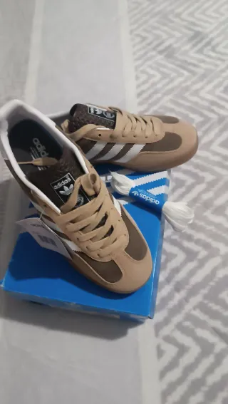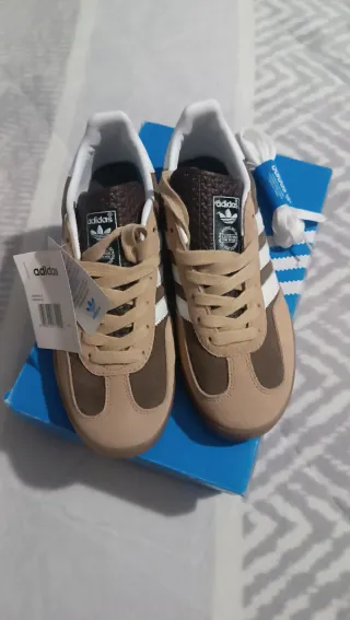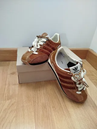 Zapatillas Adidas modelo Country OG SFTM en tonos beige y marrón. Son las que llevan pelito. Son número 36, pero tallan muy ajustadas.
