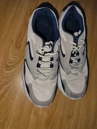 Zapatillas de la marca Coolway en tonos beige y azul. Un diseño moderno y cómodo. - Parte superior de ante y malla. - Detalle de logo en contraste. - Suela de goma. - Cierre con cordones. Talla 43 Nuevas sin estrenar. Con caja.