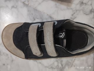 Zapatillas tipo barefoot para niño. - Cierre con velcro. - Detalle de logo en la plantilla. - Combinación de colores beige y negro.