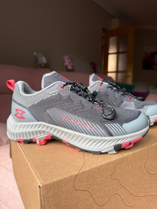 Zapatillas Garmont diseñadas para senderismo, trekking y montaña. Muy cómodas, valen para todo. De las más ligeras en su segmento. Están nuevas, no se han usado. - Sistema de lazado rápido. - Color gris con detalles en rosa. - Cierre con cordones. - Suela con buen agarre. Salomon la sportiva north face columbia merrell nike adidas terrex trekking quechua trail running asics salewa waterproof goretex