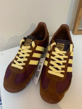 Zapatillas Adidas SL72, un clásico para tu día a día. - Diseño retro con detalles en ante. - Combinación de colores marrón y amarillo. - Cordones amarillos. - Suela de goma. - Talla 39