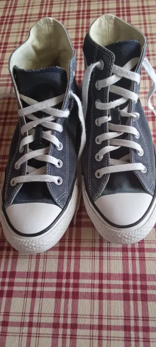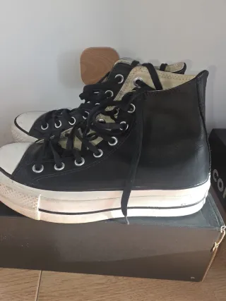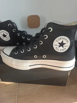 Zapatillas Converse originales de caña alta con plataforma. - Color verde militar. - Cordones blancos. - Suela blanca. - Logo de Converse All Star en el lateral. - Se venden por que fue un regalo que no gustó y no puedo devolver. - Están sin estrenar.
