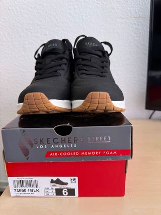 Zapatillas deportivas Skechers en color negro y blanco. Diseño moderno y cómodo. - Marca: Skechers - Color: Negro y blanco - Suela con tecnología Air-Cooled Memory Foam