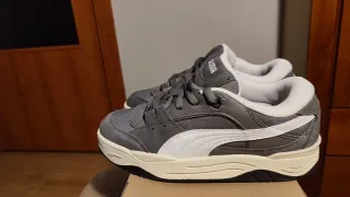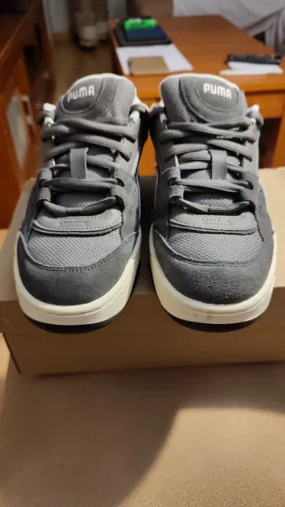 Zapatillas deportivas de la marca Puma en tonos grises y blanco. Diseño moderno y cómodo. - Cierre con cordones. - Detalle de logo en la lengüeta. - Suela de goma. Dos o tres usos.