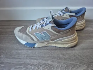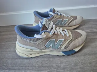 Zapatillas deportivas New Balance modelo 997R. - Diseño en tonos beige y azul. - Talla 43.