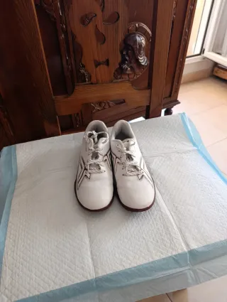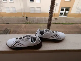 Zapatillas deportivas Tenth Titanium en talla 37 sin plantillas diseñadas específicamente para superficies de césped artificial o pistas exteriores combina con un diseño moderno en blanco con detalles en negro y granate. Tecnología de agarre multidireccional para evitar resbalones y mejorar la atracción en giro rápido suela con memoria no deja marcas en el terreno de juego. Construcción titanium ofrece un equilibrio entre la diferencia y resistencia estado en muy buen estado como se aprecia en la imagen en la escuela apenas tiene desgastes el interior - Color blanco con detalles en burdeos. - Cierre de cordones. - Diseño deportiv