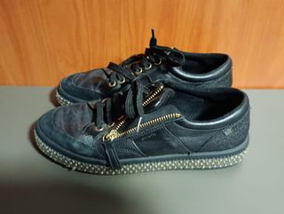 Zapatillas negras usadas, en buen estado. - Diseño deportivo. - Cierre con cordones. - Suela de goma.