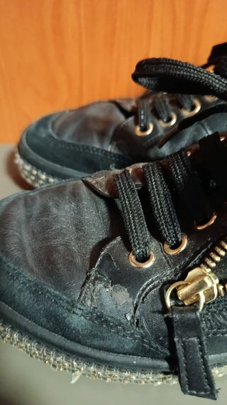 Zapato tipo deportivo estilo running. Detalle de acolchado en el cuerpo. Partes metalizadas. Suela con relieve. Cierre mediante cordones y lengüeta. Altura de la suela: 2 cm Son muy cómodas. Las vendo porque compré dos tallas y no tengo el ticket. Actualmente están AGOTADAS en Zara. Puedes consultar la web. Envío máximo en 24h