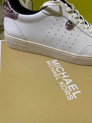 Zapatillas de la marca Michael Kors con un diseño moderno y detalles únicos. - Detalle de serpiente en el talón. - Logo metálico de la marca. - Suela de goma. - Cordones blancos.
