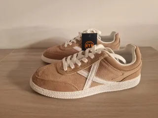 Zapatillas Munich de ante en color marrón y detalles blancos. Perfectas para el día a día. - Cierre con cordones blancos. - Suela de goma blanca. - Detalle de la 'X' característica de la marca en blanco.