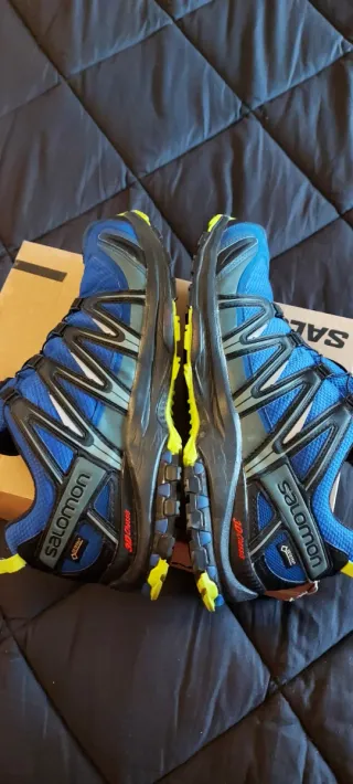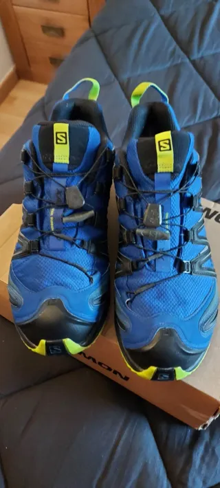 Zapatillas de trail running Salomon XA Pro 3D GTX en color azul y lima. Ideales para trail, running, senderismo, gym, casual... - Sistema de lazada rápida. - Suela Contagrip®. - Membrana GORE-TEX®. - Puntera reforzada. - Ortholite - Sensifit