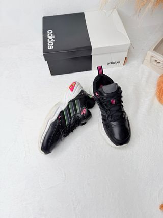 Zapatillas deportivas Adidas Strutter en color negro con detalles en rosa y verde y suela blanca chunky. Diseño moderno, cómodo y muy fácil de combinar con outfits casual o deportivos. Perfectas para el día a día, caminar o llevar con jeans, leggings o ropa deportiva. Modelo con buena amortiguación y suela gruesa que aporta estabilidad y comodidad. Incluyen caja original. Talla 37,5 Buen estado. #Adidas #AdidasStrutter #ZapatillasMujer #SneakersMujer #DeportivasMujer #StreetStyle #ModaDeportiva #WomensSneakers #CasualStyle