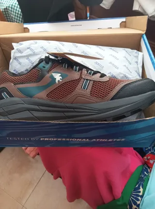 Zapatillas deportivas Joma con un diseño moderno y funcional. Perfectas para el día a día o para actividades deportivas. - Combinación de colores marrón y verde militar. - Material exterior de malla transpirable. - Suela robusta para mayor durabilidad. - Detalle de logo en el lateral.