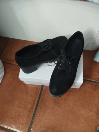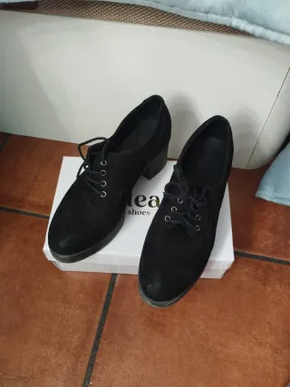 Zapatillas de vestir negras con cordones. - Diseño elegante. - Tacón medio. - Material de ante.