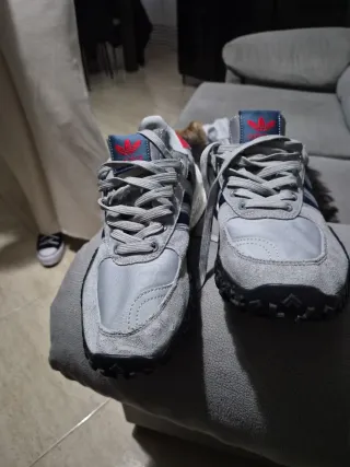 Zapatillas Adidas sin estrenar, listas para tu próxima aventura. - Diseño moderno en tonos grises y detalles en azul. - Materiales de calidad para mayor comodidad.