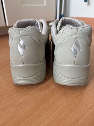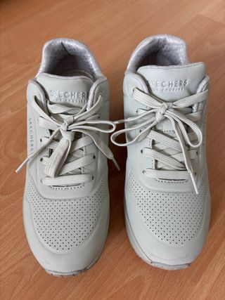 Zapatillas Skechers en color beige. Perfectas para el día a día. - Diseño moderno con perforaciones. - Cierre de cordones. - Detalle de logo en la lengüeta y lateral. -Puestas 4 veces.