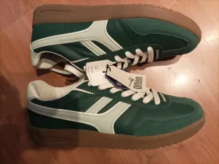 Zapatillas de la marca Pull&Bear con un diseño moderno y casual. - Combinación de colores verde y marrón. - Talla 45.